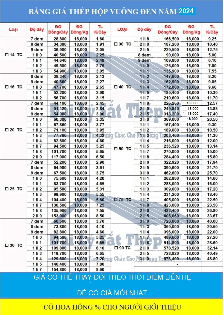 Báo giá sắt hộp mang tính tham khảo, liên hệ để có giá chính xác ở thời điểm thực kèm chiết khấu mới nhất khi mua thép hộp với số lượng lớn.