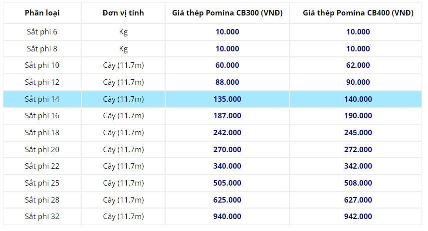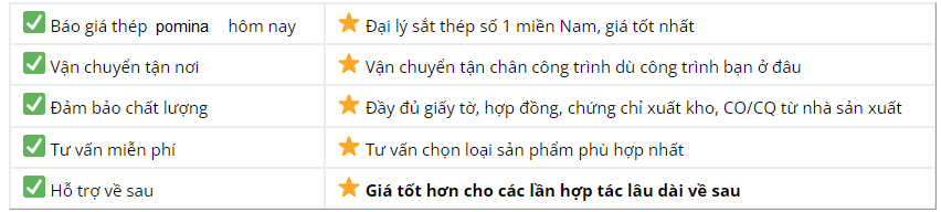 Bảng giá sắt thép Pomina ở trên đã bao gồm thuế VAT và chi phí vận chuyển đến chân công trình